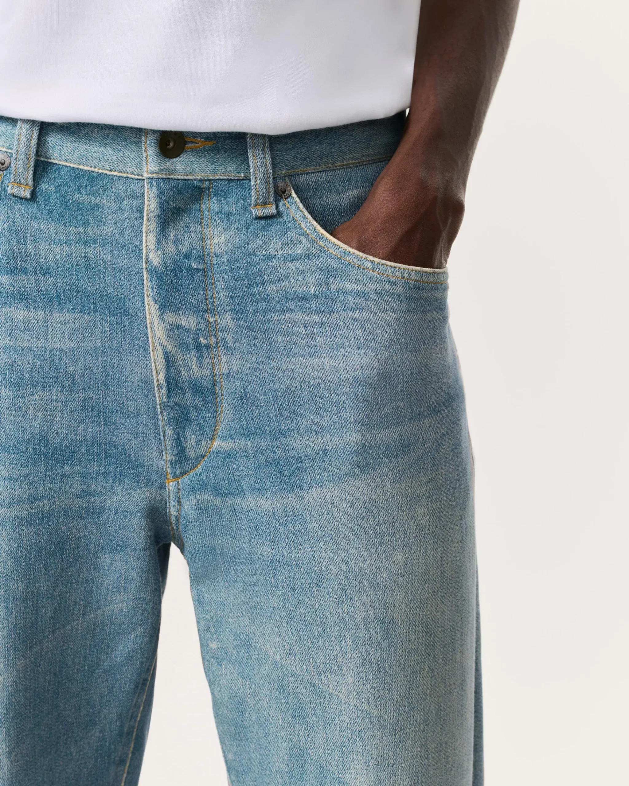 Miramar, our revolutionary printing technique, makes any material look like denim. These five-pocket pants are individually cut and sewn from cotton terry cloth that’s ultra-soft on the inside and printed on the outside to look like your favorite jeans. Featuring functional pockets, a zip fly, and a button closure, the mid-rise, straight-leg style further achieves its comfortable fit and feel with the visual denim details digitally printed on the fabric.
