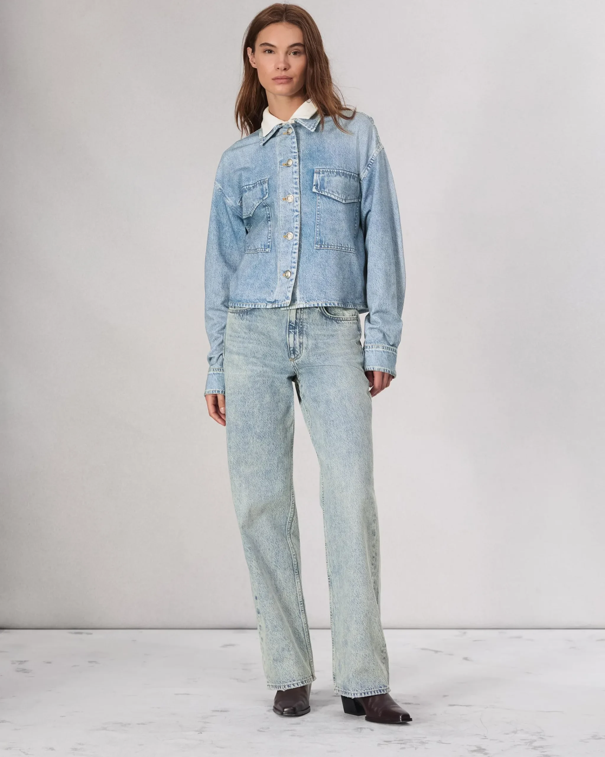 Miramar, our revolutionary printing technique, makes any material look like denim. This jacket is individually cut and sewn from cotton terry cloth that’s ultra-soft on the inside and printed on the outside to look like your favorite jeans. Featuring signature dagger buttons, the relaxed, slightly cropped style further achieves its comfortable fit and feel with the other denim details digitally printed on the fabric.