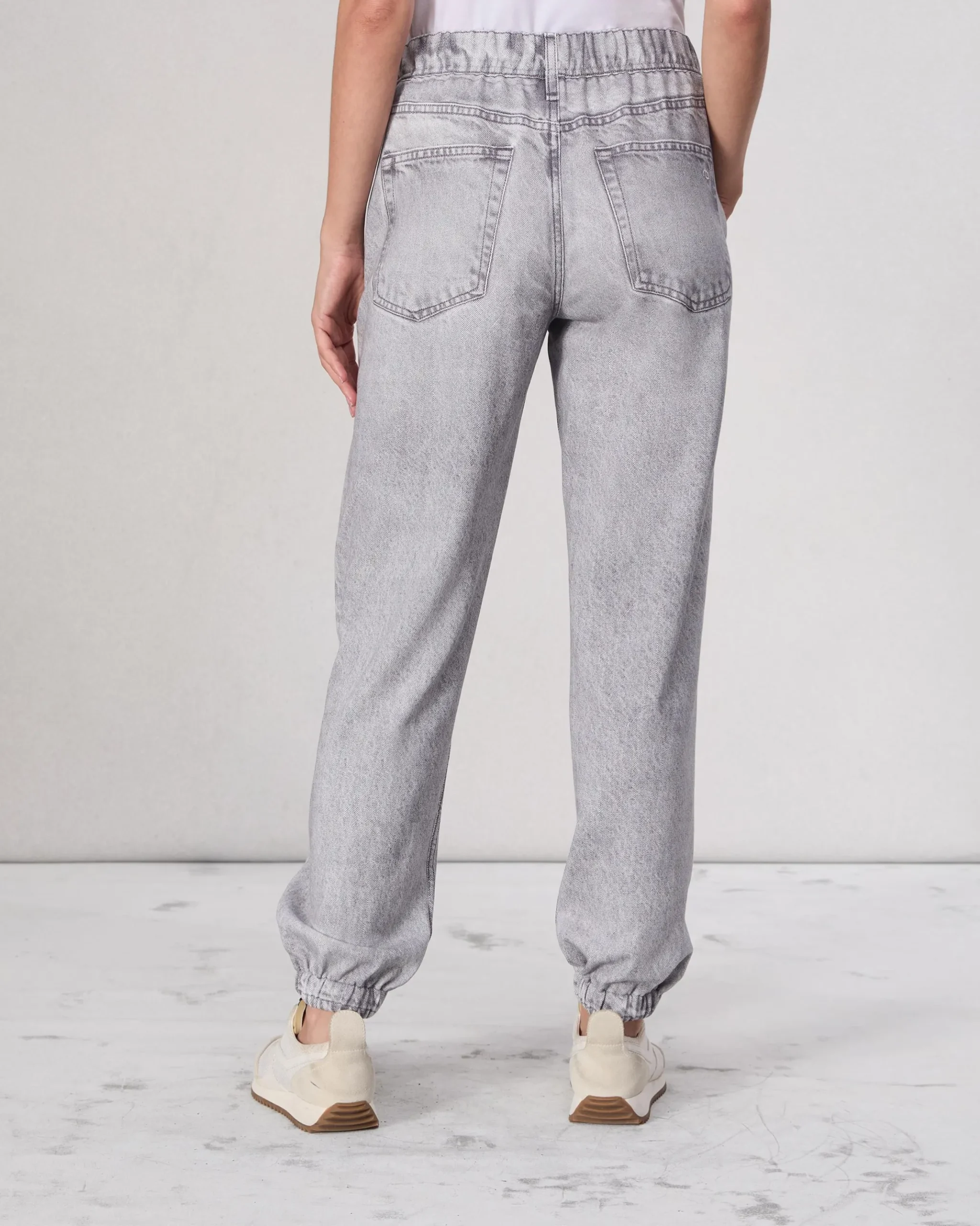 Mid-rise, slim jogger fit, ankle lengthSize Small: 10 1/2″ rise, 28 1/2″ inseam, 10″ leg openingPull-on elastic waistFor a relaxed fit, size up