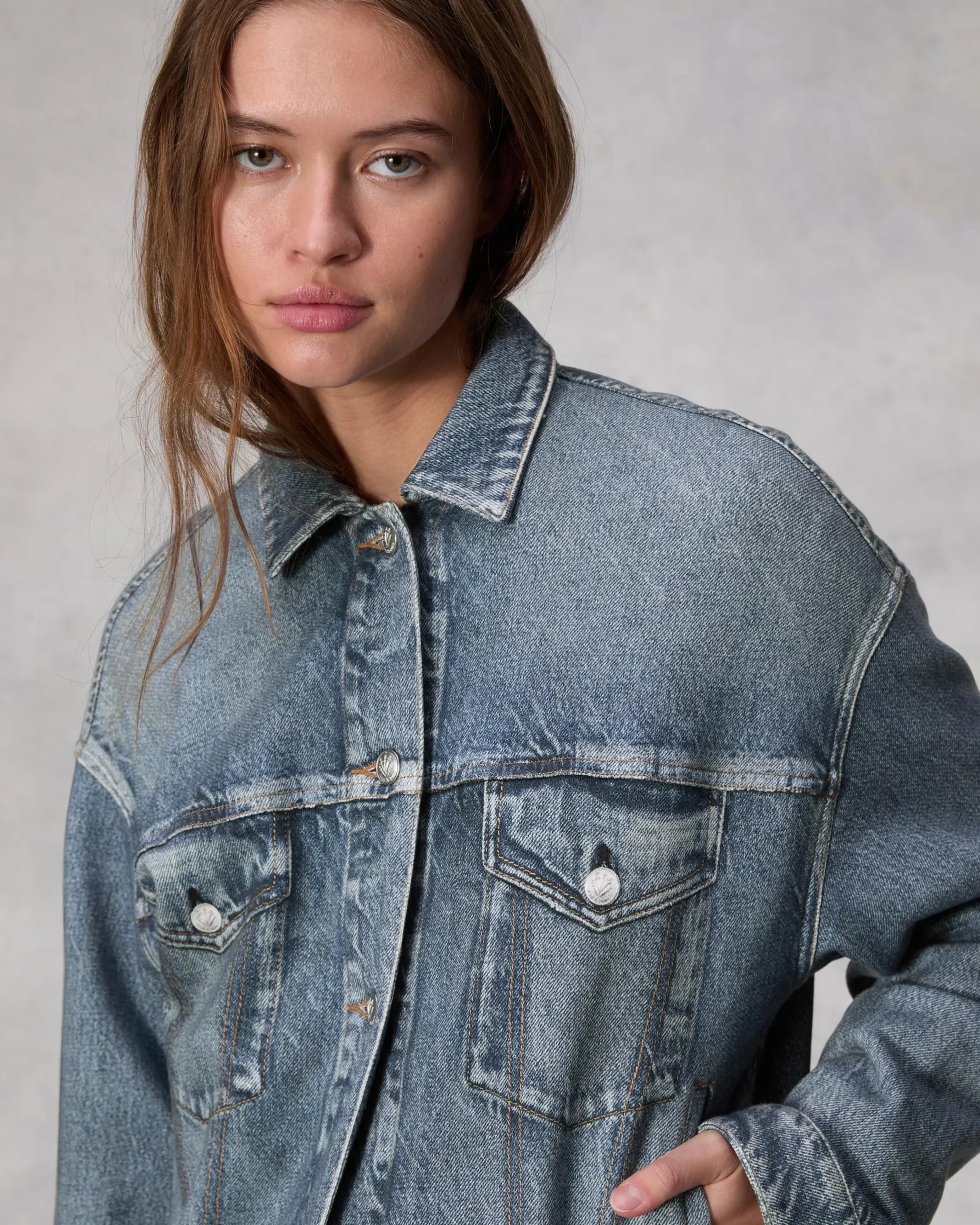 Miramar, our revolutionary printing technique, makes any material look like denim. This trucker jacket is individually cut and sewn from cotton terry cloth that’s ultra-soft on the inside and printed on the outside to look like your favorite denim jacket. Featuring side hip pockets and signature dagger buttons down the front and cuffs, the classic style further achieves its comfortable fit and feel with the other pockets and denim details digitally printed on the fabric.