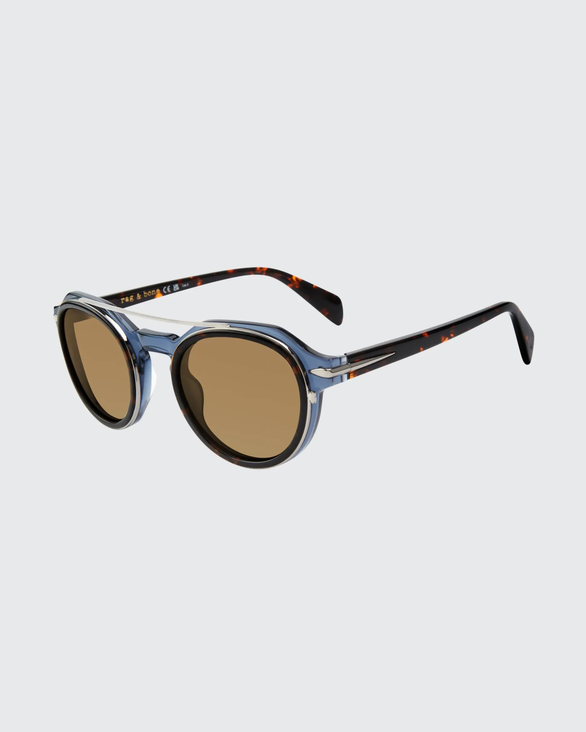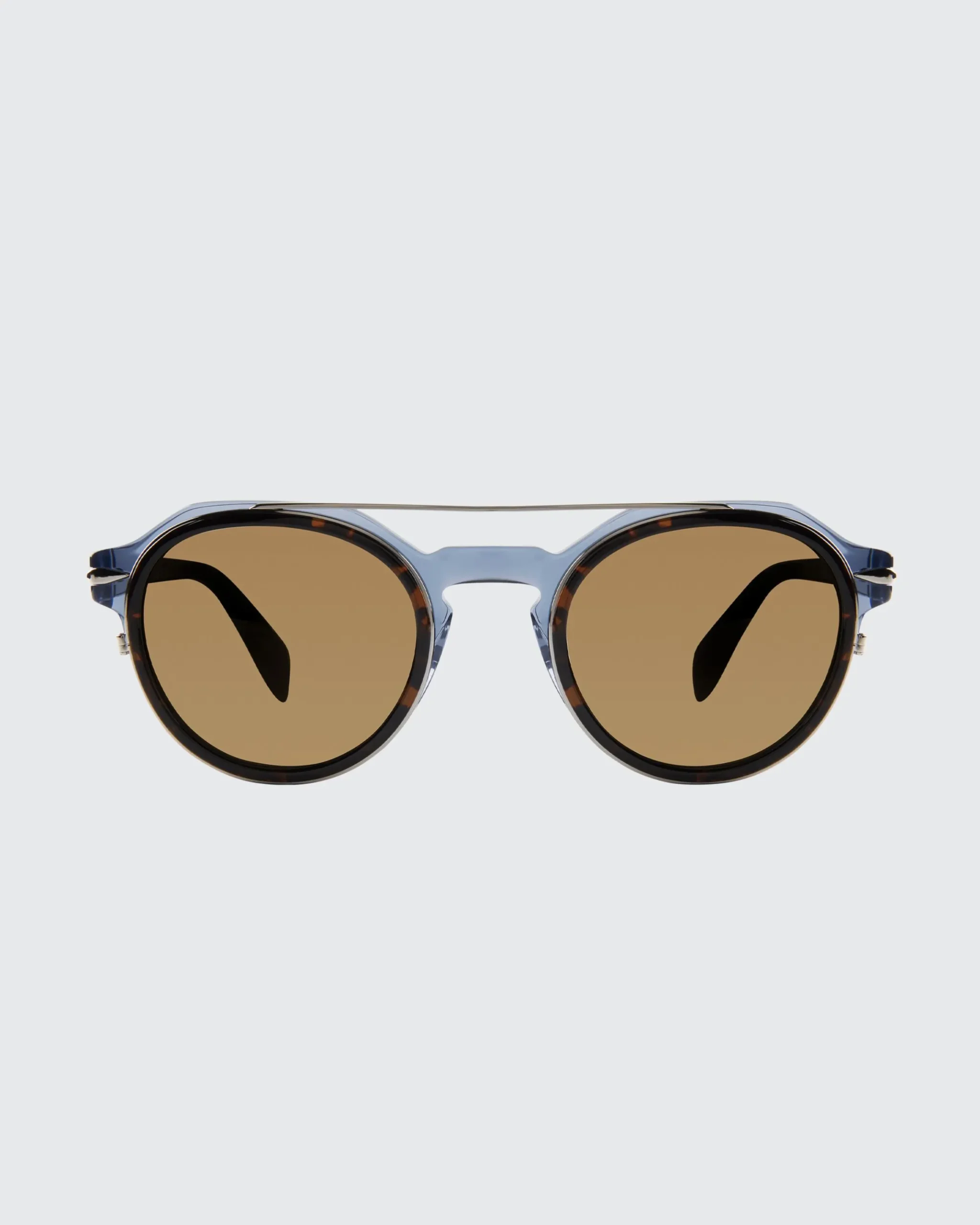 A round eye silhouette with an acetate frame and 100% UV protection.