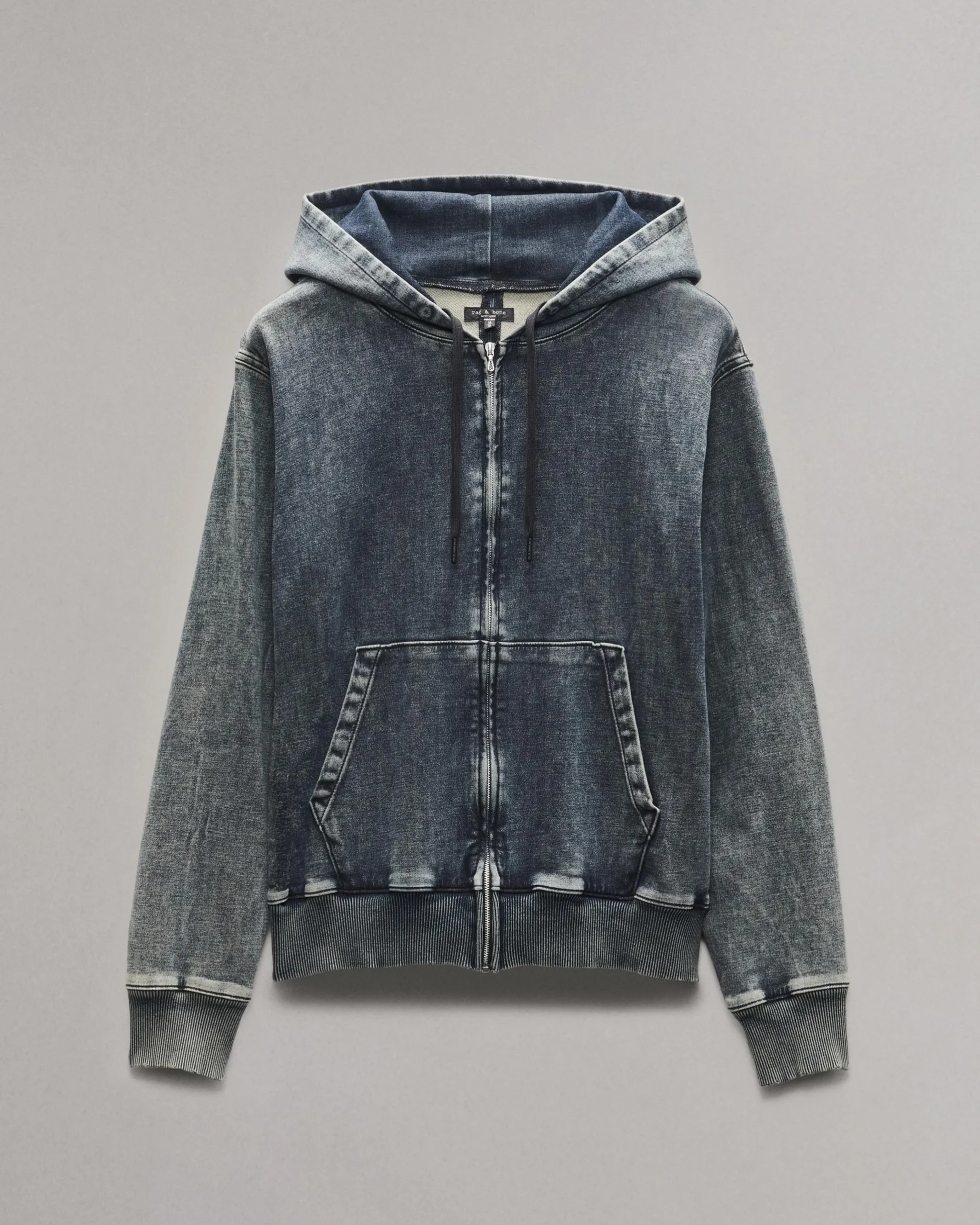 We took this zip-up hooded sweatshirt to the next level by crafting it in a relaxed fit from rbSTRIDE, our innovative denim with unparalleled stretch and softness. Fusing the classic cool of denim with the comfort of your favorite sweats. In Bradbury, a medium indigo wash.