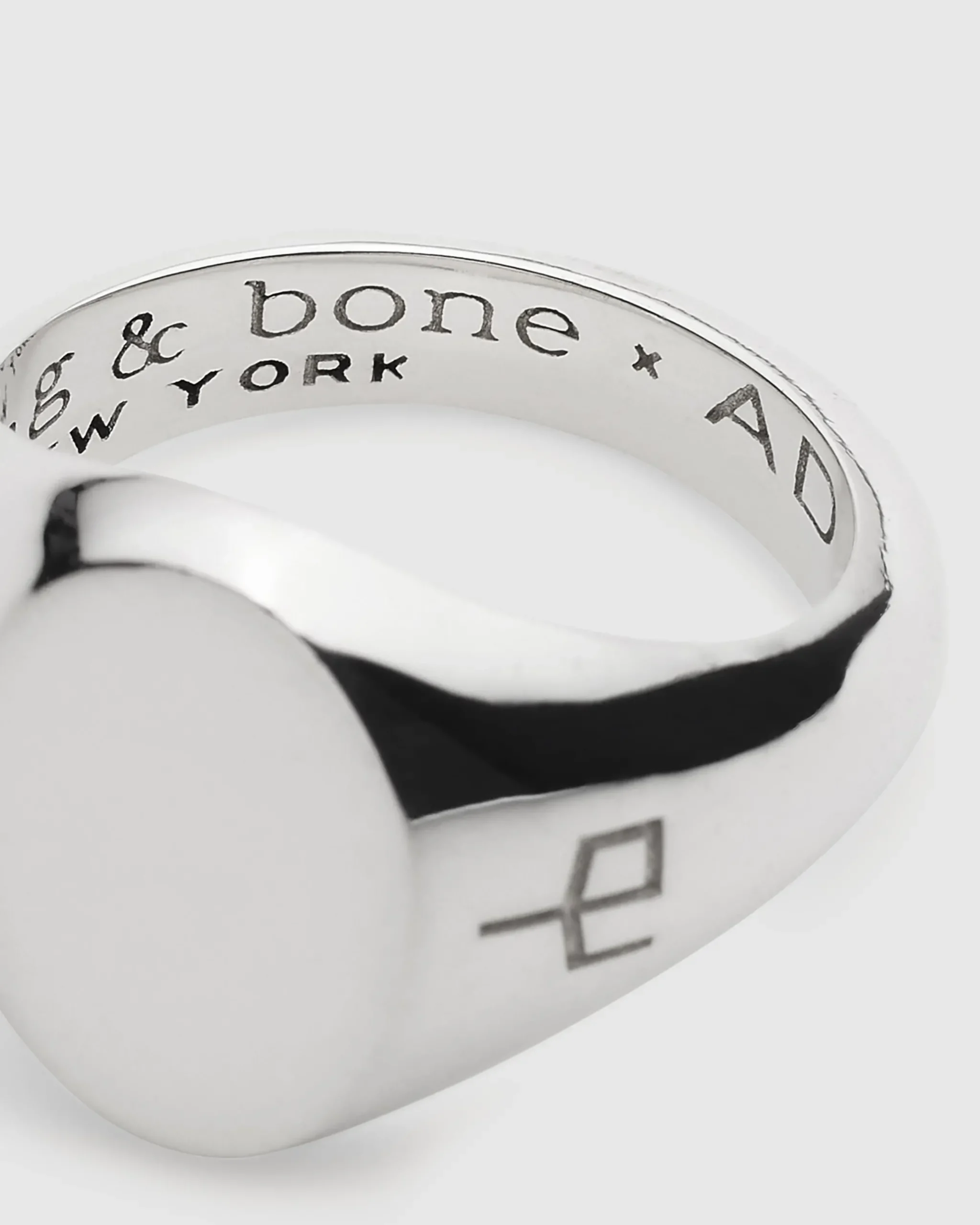 Designed in New York City and made in the USA, this sterling silver signet ring stems from our British DNA. A classic, oval-shaped take on the English symbol of heritage bearing one’s family crest or initials, the heirloom-worthy treasure features a substantial shank and will develop a rich patina with age. It’s finished with an embossed “rb” logo and an engravable face—a blank canvas for the wearer to customize.Introducing rag & bone’s first foray into jewelry. Brought to life in partnership with LA-based designer Alexander AD, this capsule collection expands our rich history in metal work while drawing on our unpretentious New York attitude and reverence for British heritage techniques. This is jewelry distilled to its essence. A singular finishing touch.This is one of several select designs that can be customized exclusively at our West Hollywood and Soho stores.