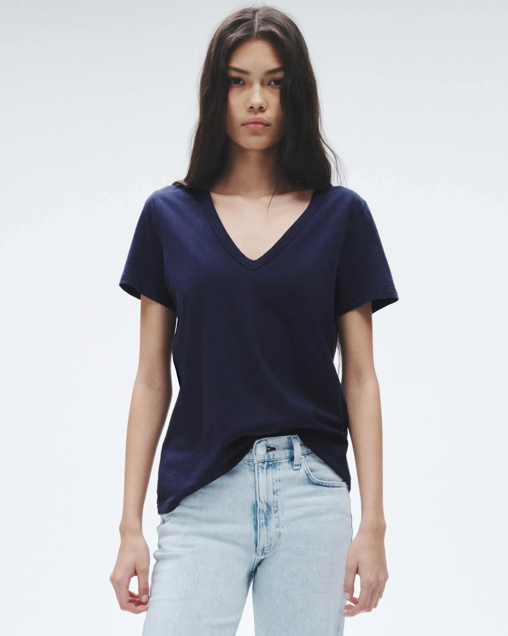 A timeless V-neck T-shirt, cut for a relaxed fit from slub cotton. Easy to wear with denim and sneakers or style under suiting for a modern look.
