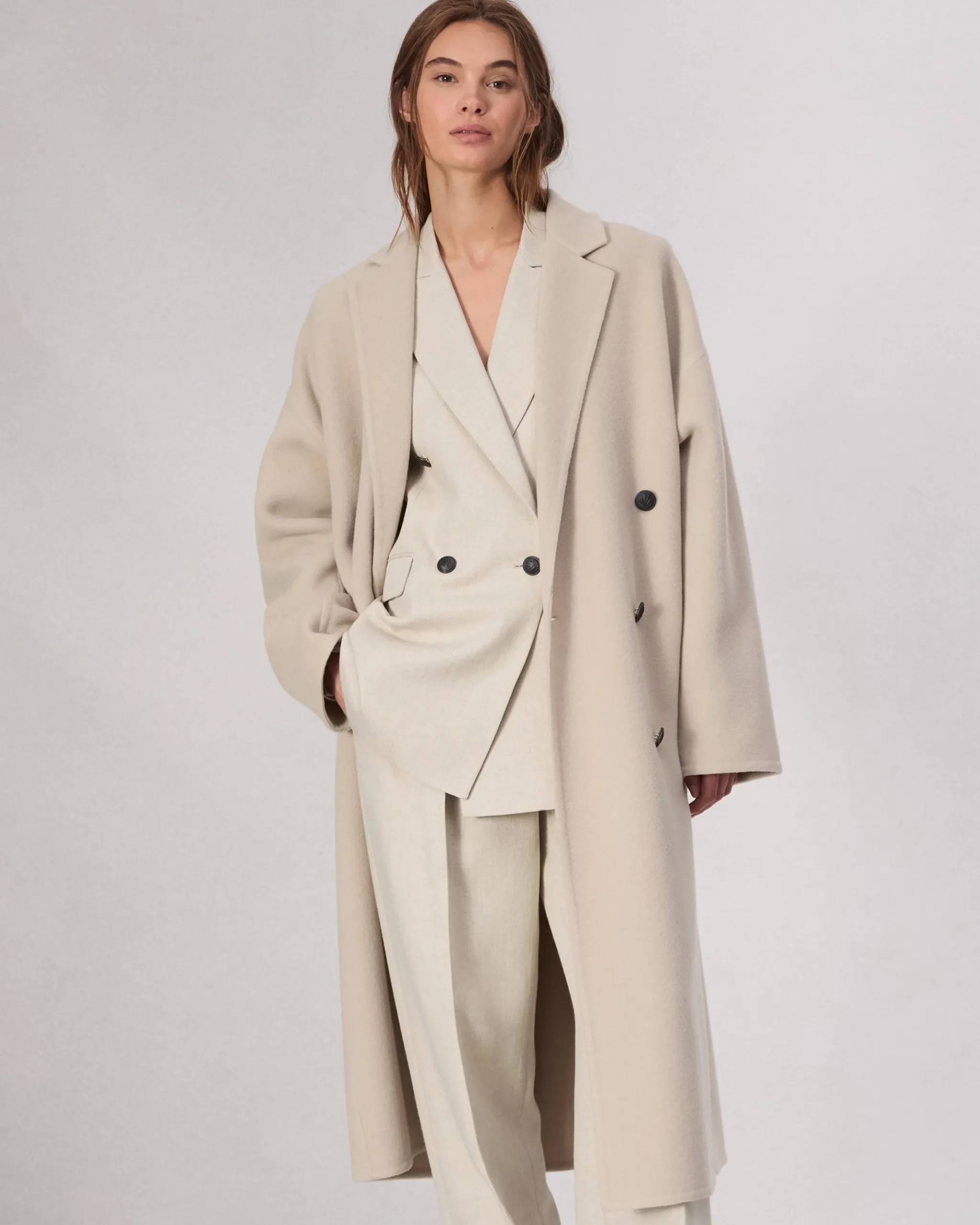 The Thea. Our longline coat is cut with a relaxed silhouette with substantial notched lapels in an Italian double-faced wool-blend.