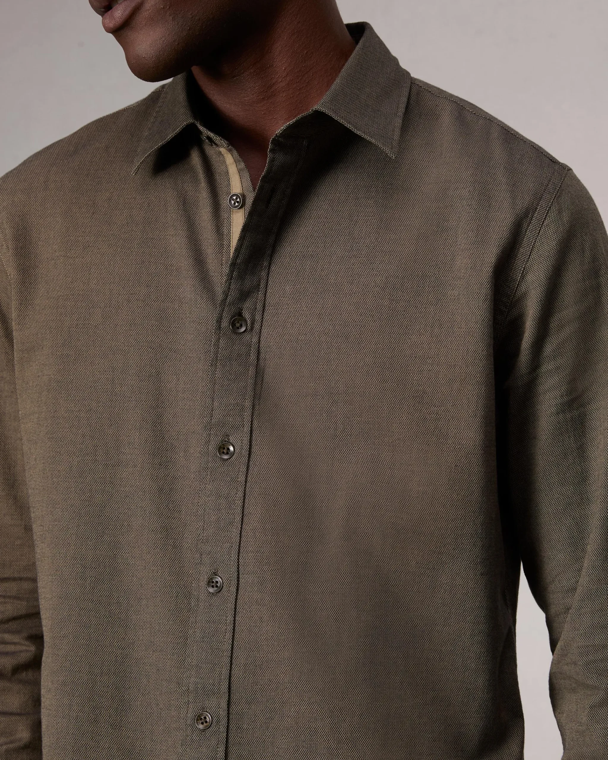 We updated our signature shirt in cotton dobby woven with a comfortable touch of stretch and the subtle texture of a small geometric pattern.