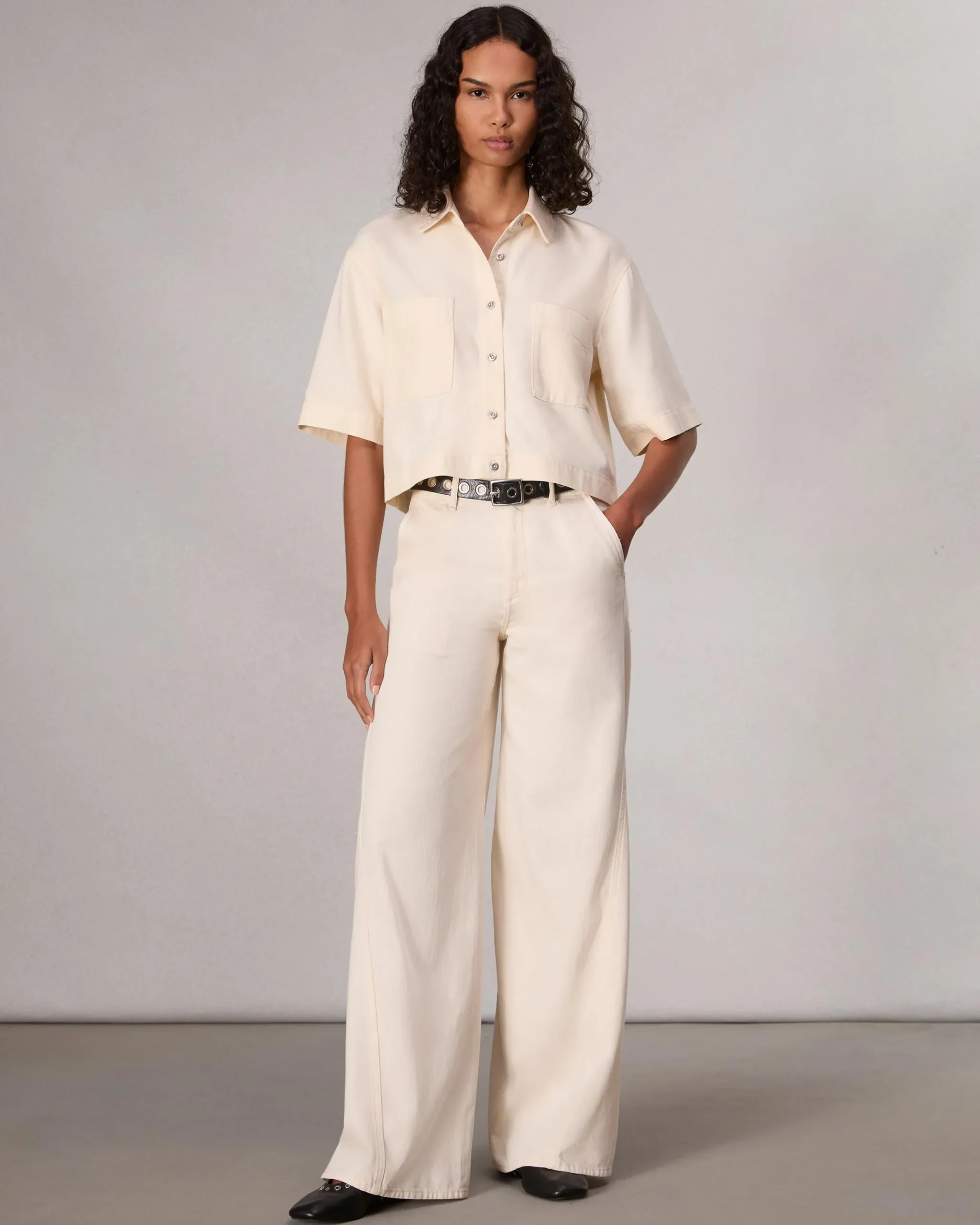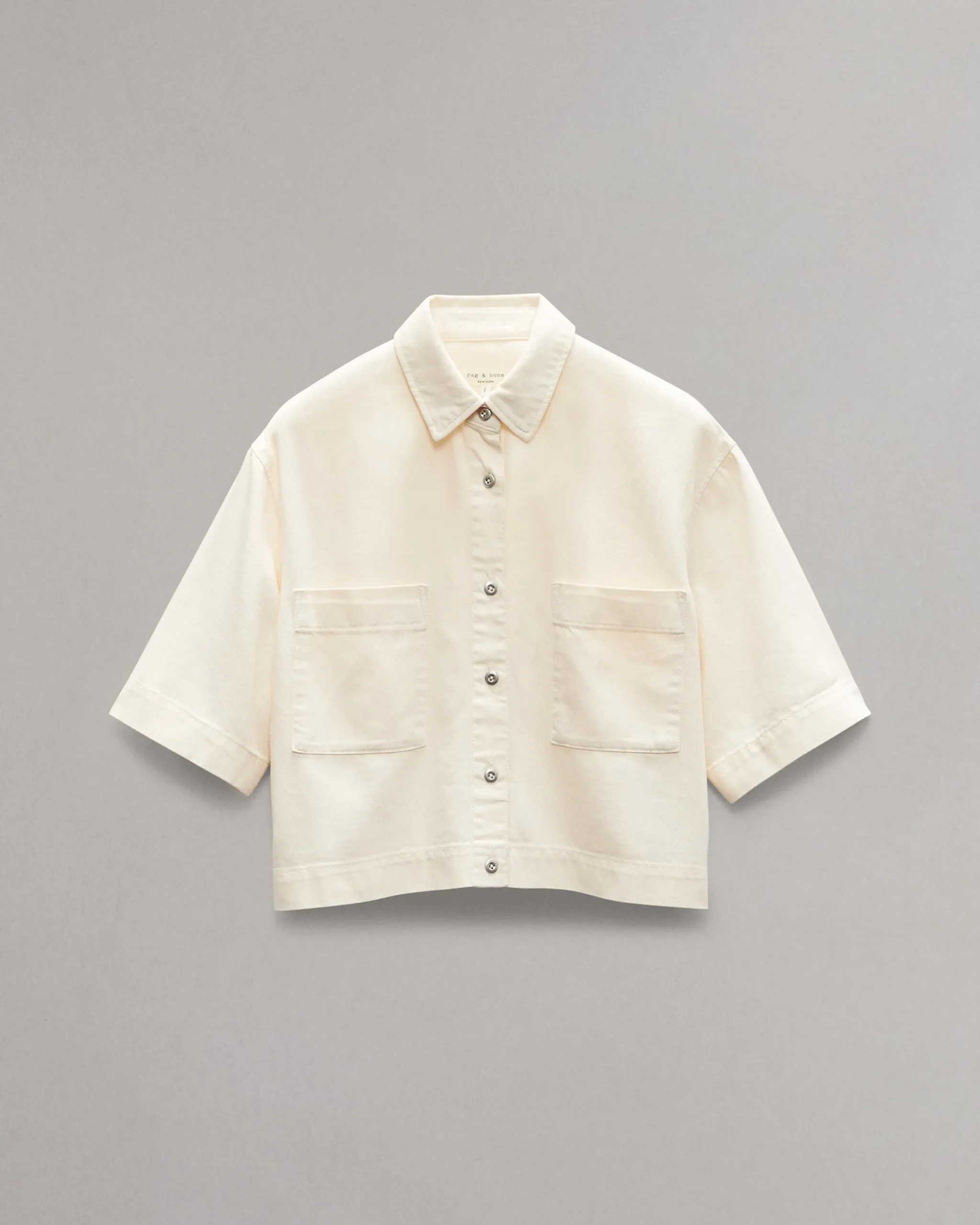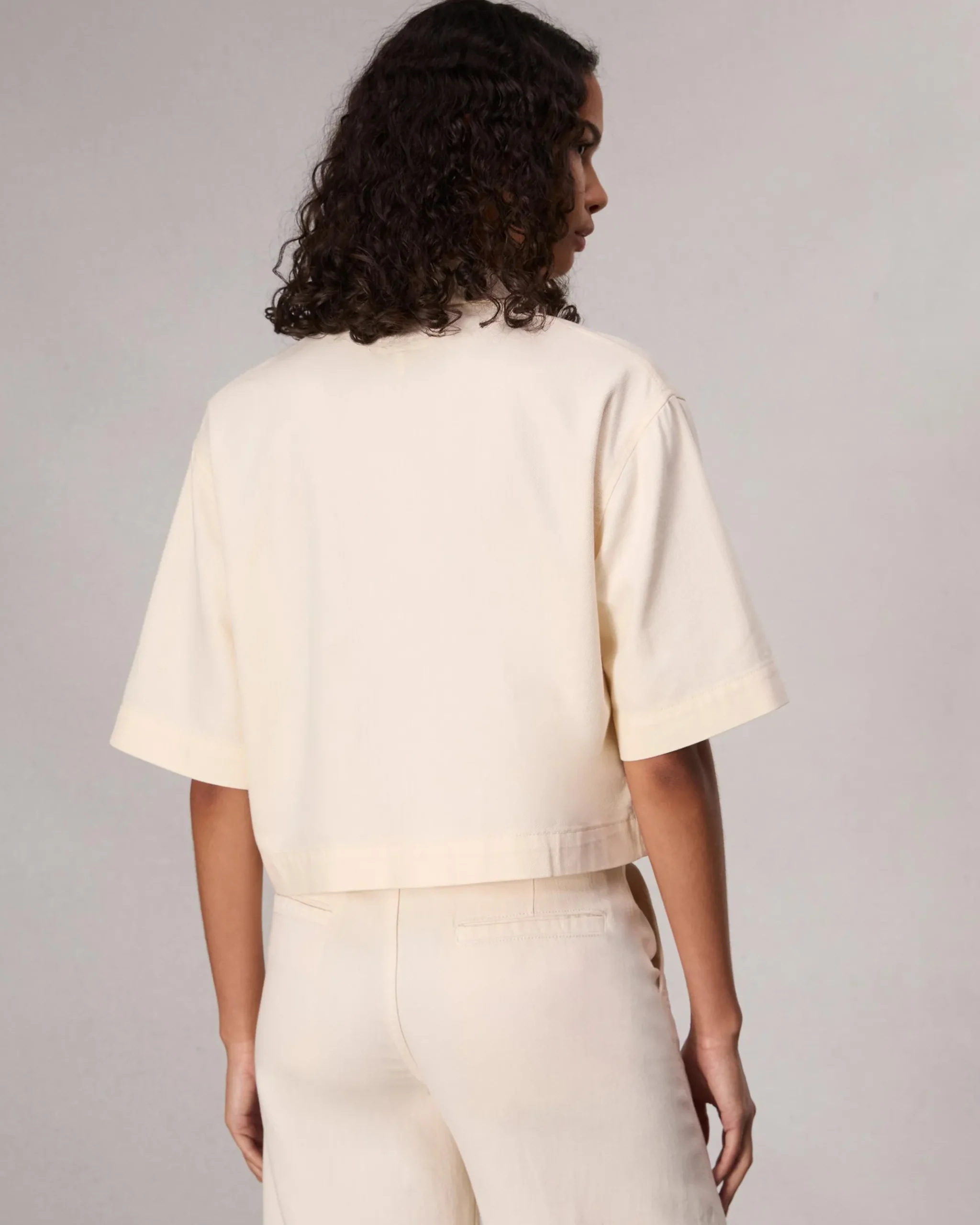 A modern spin on the denim shirt. This short-sleeve button up is cut for a cropped, slightly boxy fit from our Ultra Featherweight denim, making it supremely soft and light with an easy drape. In Ecru, a cream hue.