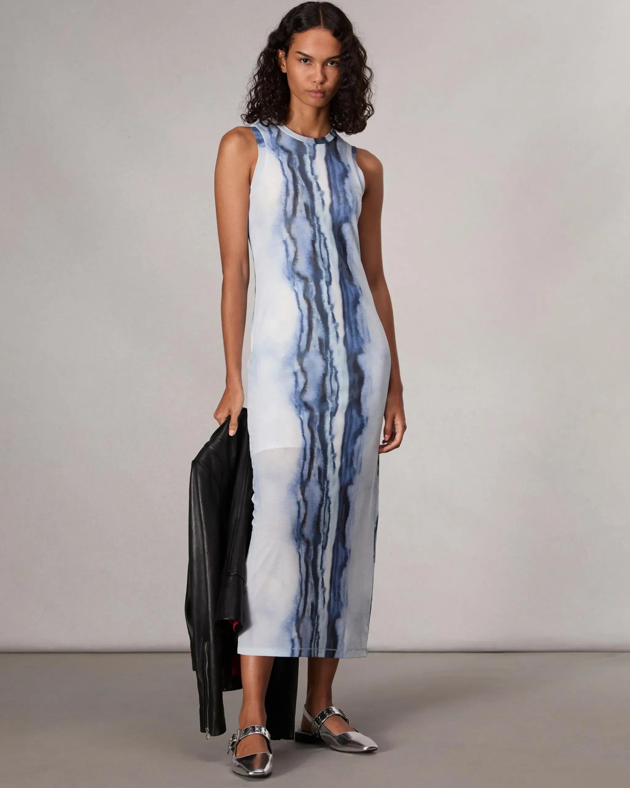 Figure-flattering stretch mesh with an abstract, painterly print ensures this jersey-lined maxi dress always looks as great as it feels.